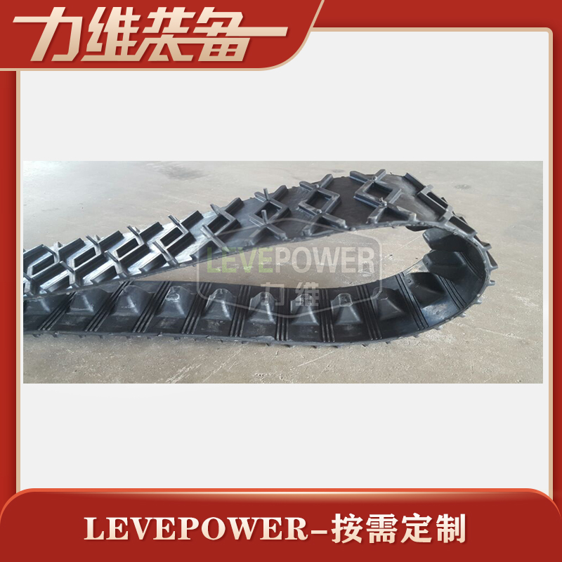 此產品采用復合橡膠橡膠,內置高強度芳綸,外花紋偏向于平紋,采用網格狀設計,大限度的增大了履帶的接地面積,履帶式底盤裝上此產品走起來非常平穩(wěn)。