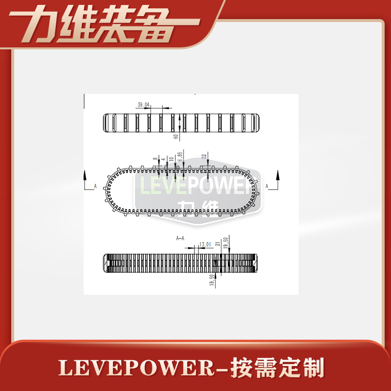 我公司生產特種橡膠履帶,履帶外花紋采用橫紋間接設計,內齒節距密度采用密集節距設計,此履帶采用納米復合橡膠材料,具有高耐磨性,內置美國杜邦公司凱夫拉纖維,輕巧但抓地能力強。此產品配套于機器人底盤、消防機器人上,效果甚好。此產品用于不超過總載重80kg以內的機械裝備使用。