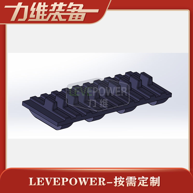 履帶外花紋采用圓弧橫紋間接設計,內齒節距密度采用密集節距設計,主要應用于機器人底盤機械臂的配套使用。