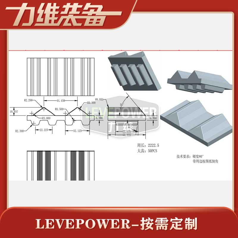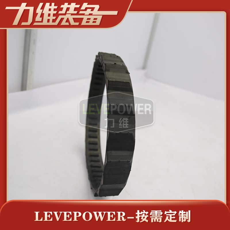 此履帶外花紋采用高齒三角狀高齒設計,增加了外花紋的設計強度,并提高了履帶本身的抓地力,內齒采用矩形長條設計,節距較密,和外花紋呈倍數配合,此產品采用抗拉伸橡膠材料,內置凱夫拉纖維,絕非普通的鋼絲,是一款提升履帶的抗拉伸能力的耐磨橡膠履帶,此履帶可配套于橡膠履帶底盤、無線遙控底盤等多種機型上使用。此產品用于不超過總載重100kg以內的機械裝備使用。