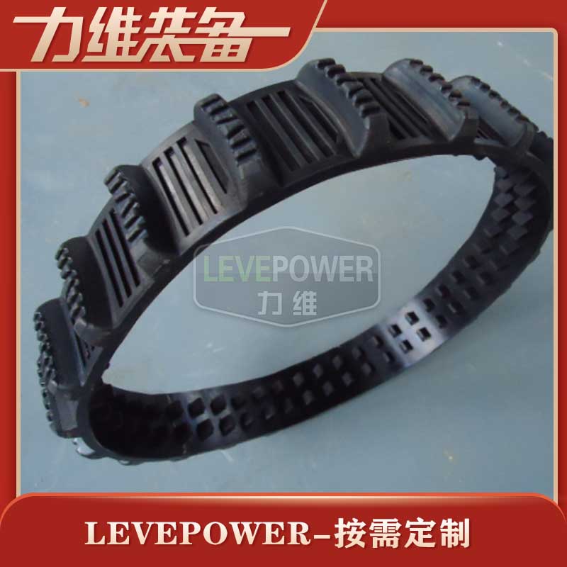 此履帶為撥齒履帶,外花紋采用波浪形長條結構設計,和GMD-A履帶一般配套使用,內齒采用密度三角形設計,采用驅動輪撥動雙齒的方式,此產品采用特種橡膠材料,內置凱夫拉纖維,此種纖維輕單抗拉能力很強,此款柔軟輕巧,攀爬力很強,是一款非常耐磨橡膠履帶,非常適合配套于履帶式電動底盤無線遙控底盤上使用。