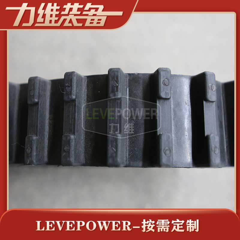 此履帶為撥齒履帶,外花紋采用矩形橫紋設(shè)計,內(nèi)齒采用節(jié)距適中的三角塊狀設(shè)計,帶體較厚,此款設(shè)計提高了履帶自身的載重能力,和抓地力是一款適合用于機器人底盤的配套履帶。