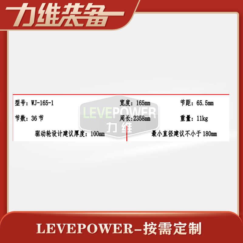 此款特種橡膠履帶外花紋采用大方格排序橫紋高齒間接設計,內齒采用大梯形高齒的設計,此款履帶適合中型底盤系統使用。
