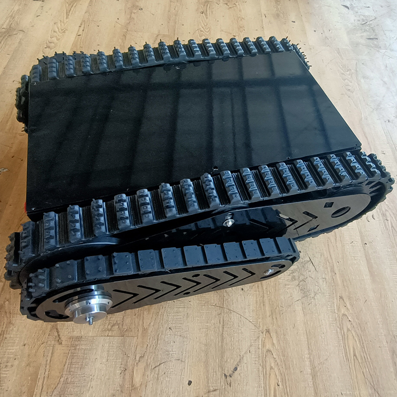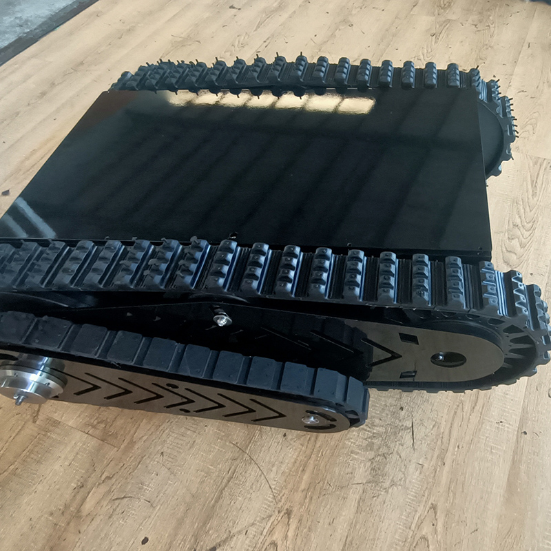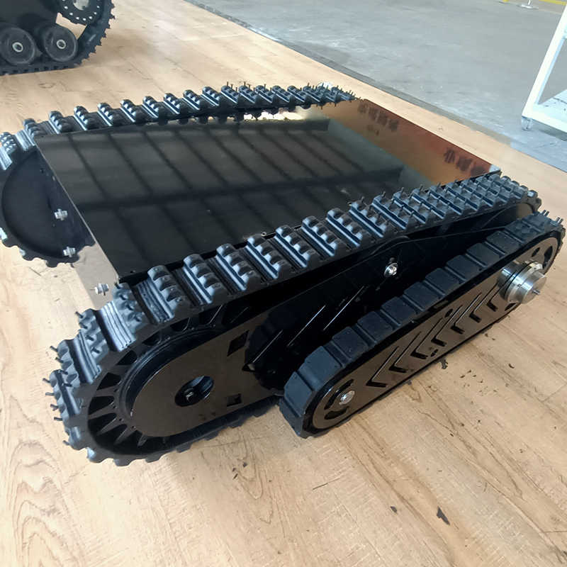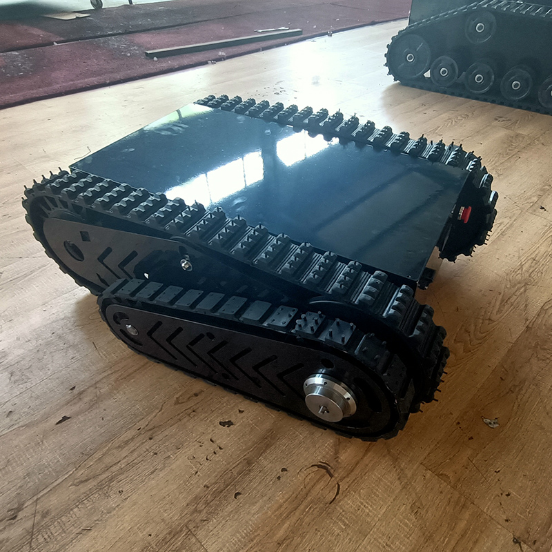 該底盤主體履帶使用100mm寬耐磨橡膠履帶,外花紋橫紋設(shè)計,提高攀爬能力。擺臂履帶采用40mm寬度機(jī)器人橡膠履帶,底盤箱體經(jīng)過高溫噴砂噴塑防銹處理,主題底盤采用2個24v200w伺服直流無刷電機(jī),擺臂采用1個24v200w伺服直流無刷電機(jī),渦輪蝸桿減速機(jī),可載重50kg,是一種操控既方便,有實用的底盤系統(tǒng),在不平坦的路面,爬坡,越障非常好用。是一款全地形底盤。電池采用磷酸鐵鋰鋰電池,持續(xù)續(xù)航時間可達(dá)4個小時長時間續(xù)航。